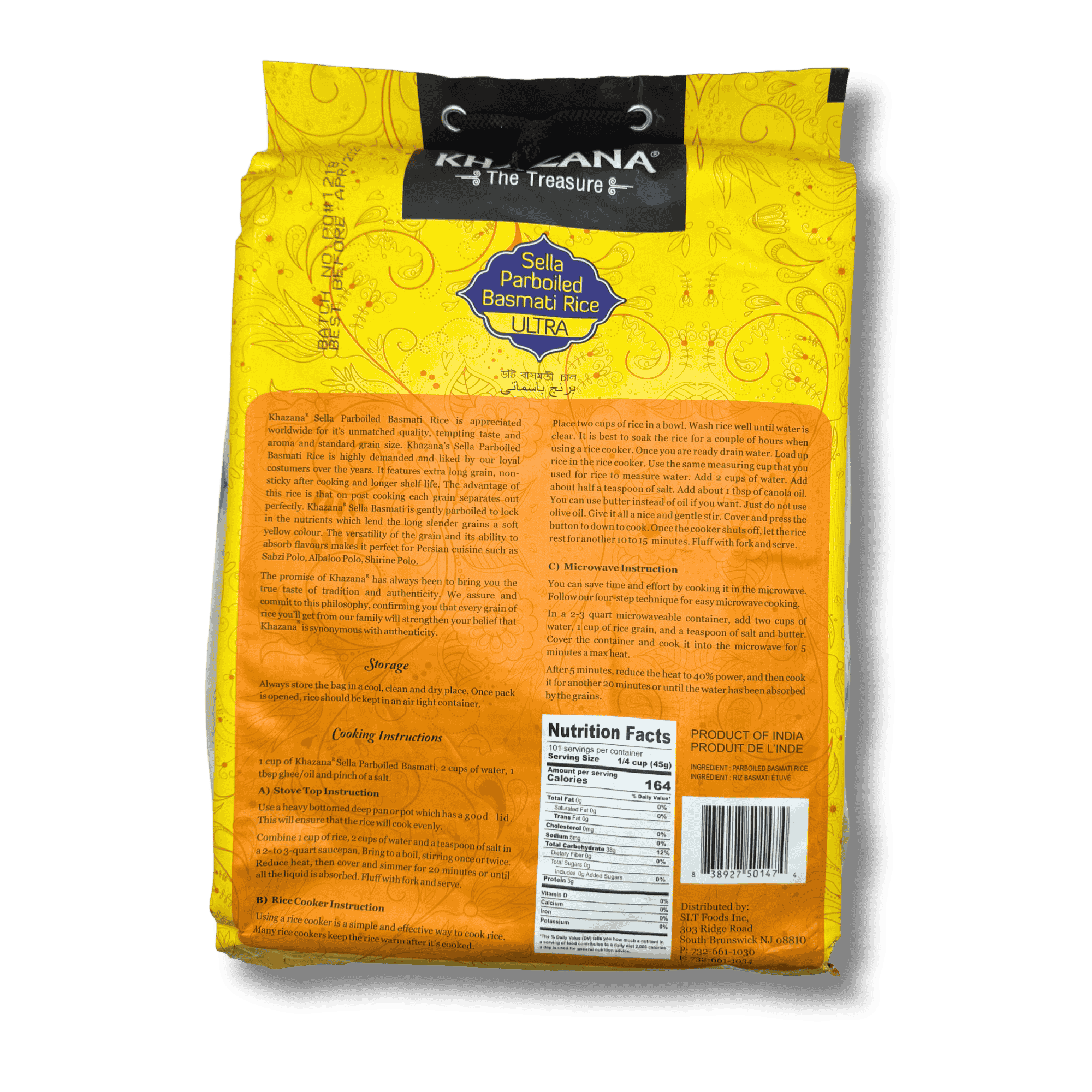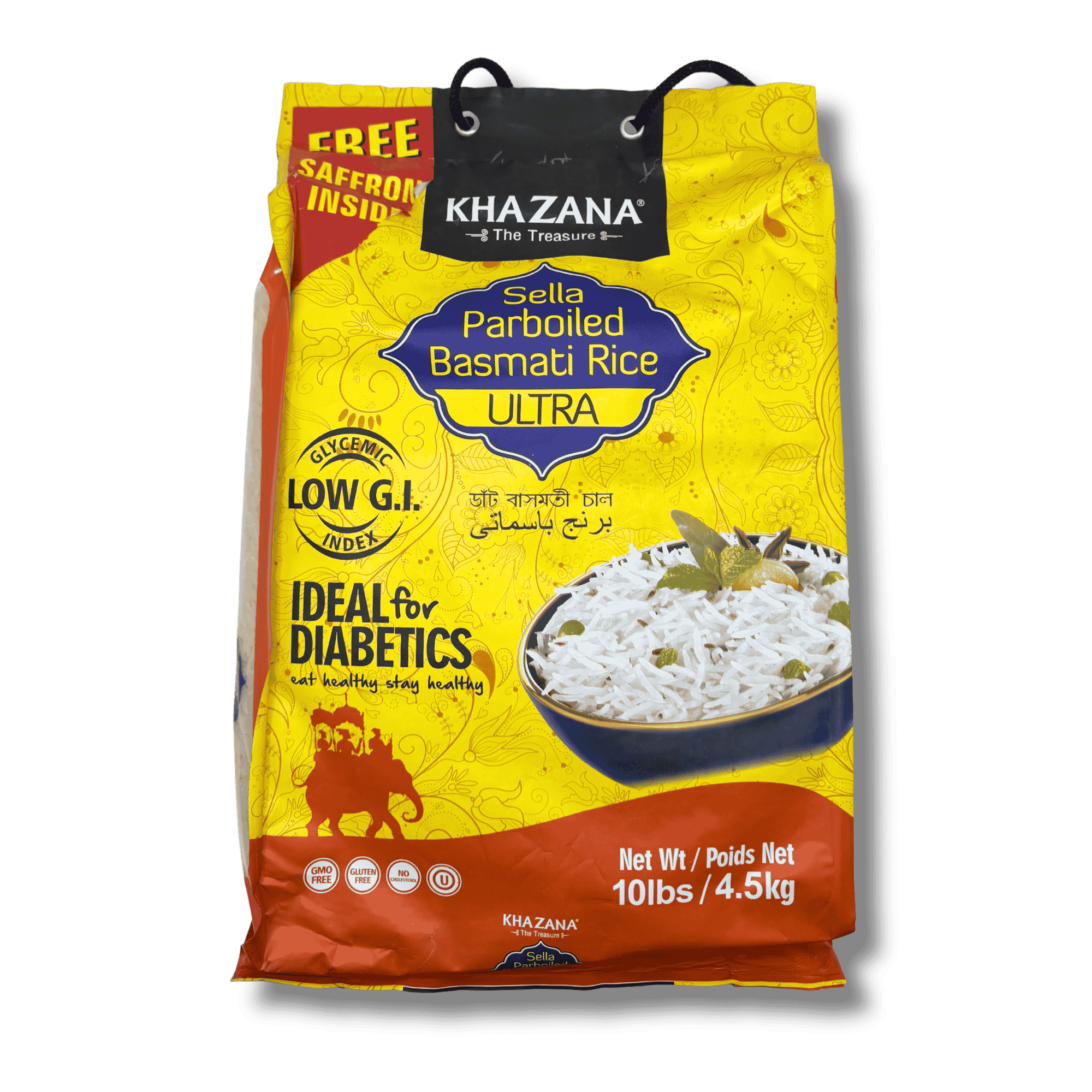 Khazana Sella Parboiled Basmati Rice Ultra is carefully processed to retain nutrients while delivering long, separate grains after cooking. The parboiling method helps preserve texture, flavor, and consistency, making it a reliable choice for daily cooking. This variety cooks fluffy and non-sticky, with elongated grains that remain firm and distinct.
