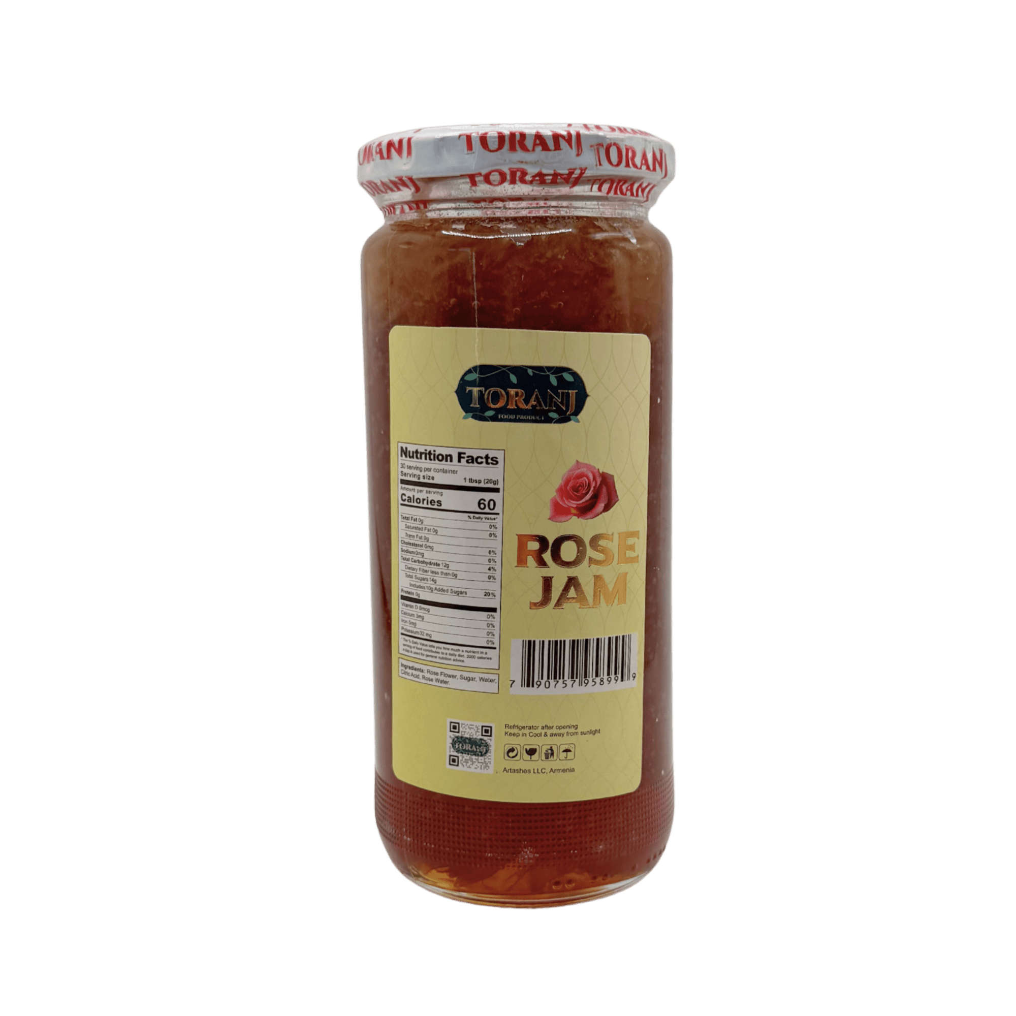 Order Rose Jam 21 oz online. This traditional jam is made from rose petals and is commonly enjoyed with bread, pastries, or tea.